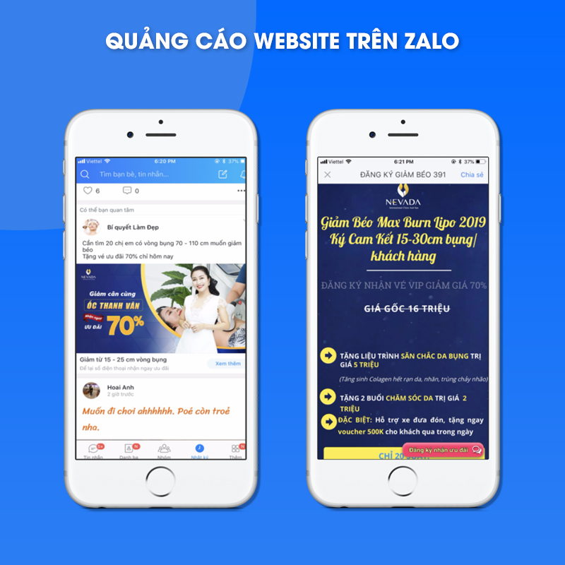 Quảng cáo trang web trên nhật ký zalo